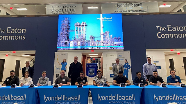 Many high-performing student athletes from across the U.S. will experience the culmination of their college recruitment journey on “National Signing Day.” This is when they append their signature to a letter of intent committing to attend a certain college or university to compete in the National Collegiate Athletic Association (NCAA). On “National Signing Day,” some of the athletes even take part in news conferences for local - and national - media outlets to capture their signifying moment. For 10 recent graduates of the LyondellBasell Center For Petrochemical, Energy, & Technology (CPET) at San Jacinto College (SJC) – all from different walks of life – the pinnacle of their hard work and dedication was recognized on “LyondellBasell Signing Day” when they accepted and signed job offers with the company.